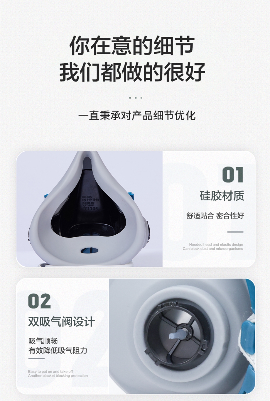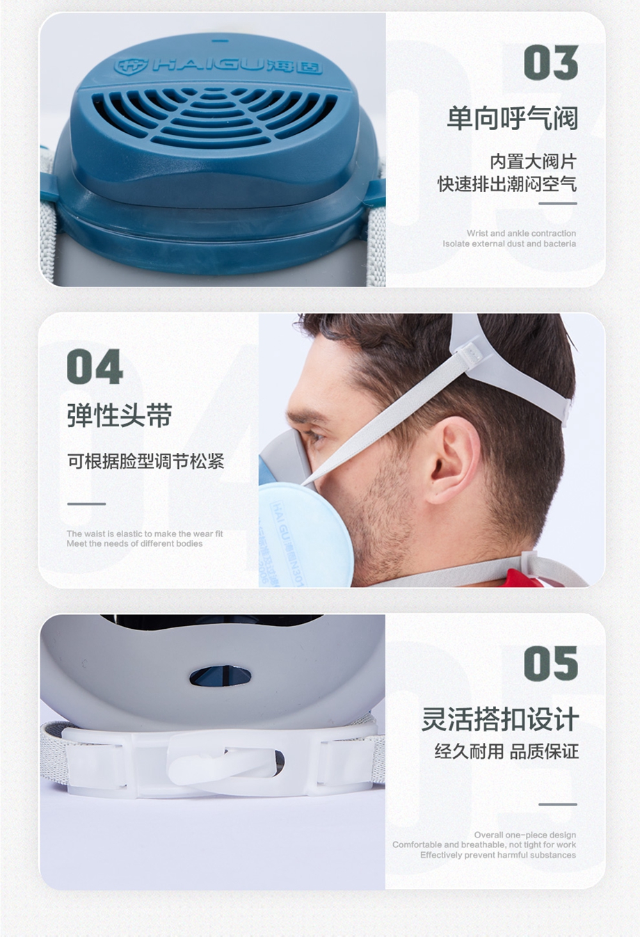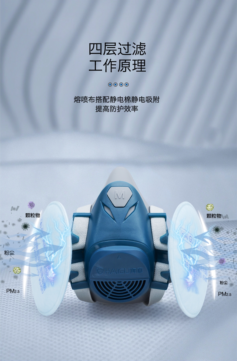 海固HG-600半面罩防毒面具+KN100/KN95/KN90非油性顆粒物濾棉