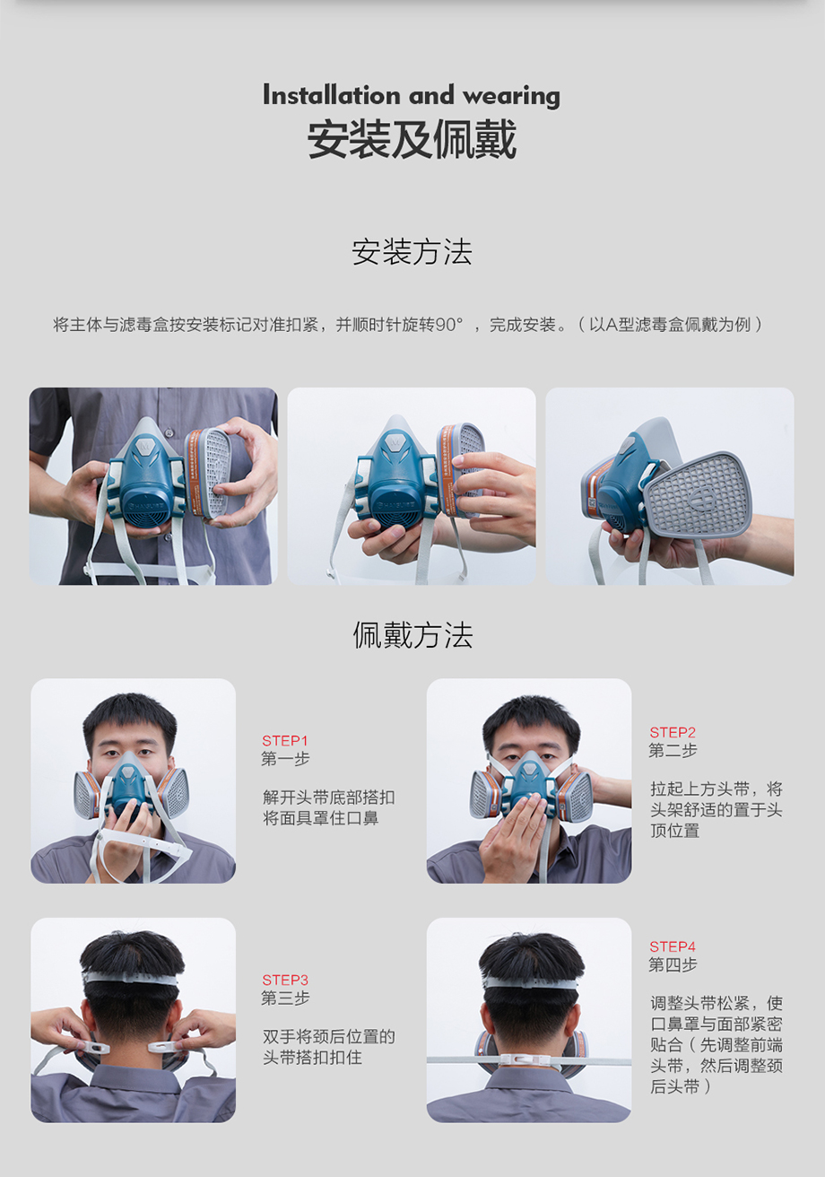 海固600半面罩+P-K-1濾毒盒 防護氨及氨的有機衍生物套裝