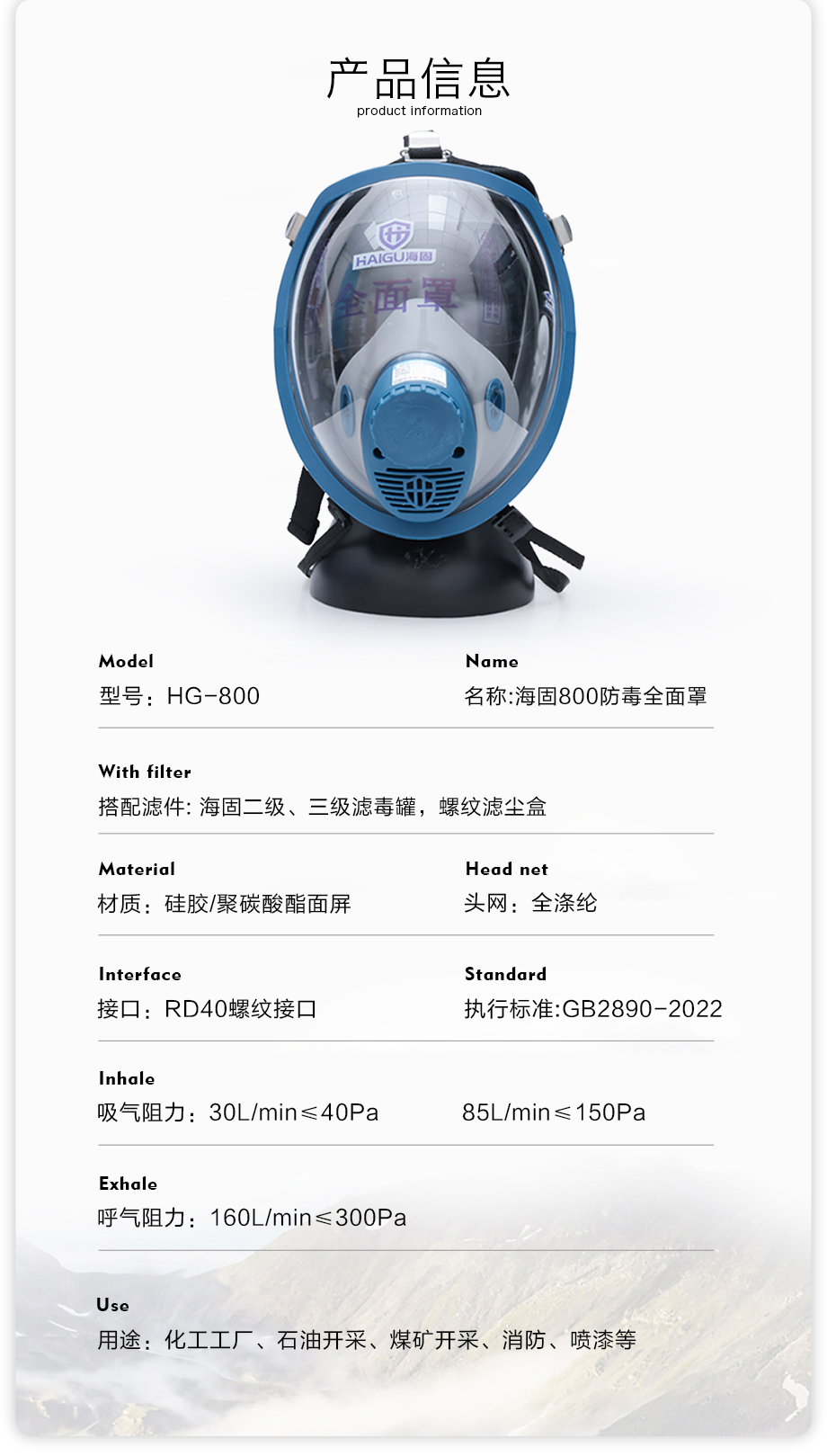 海固HG-800全面罩 防毒防塵面具 工業(yè)防毒面具