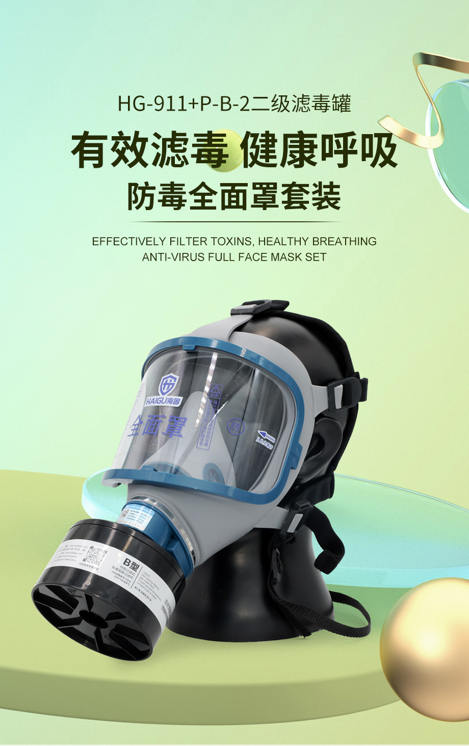 海固911全面罩+HG-ABS/P-B-2濾毒罐 防毒面具 無機(jī)氣體綜合防護(hù)