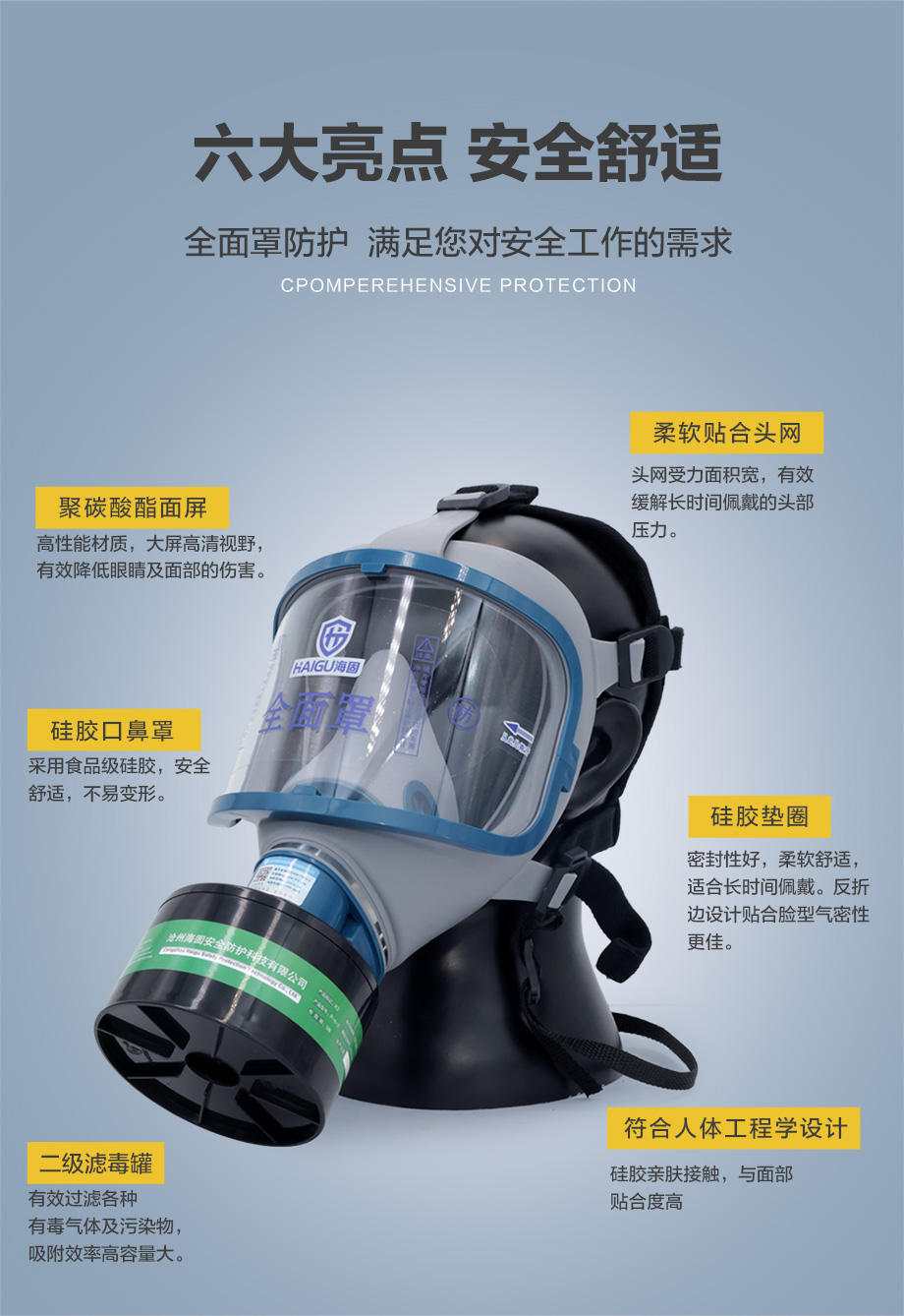 海固911全面罩+HG-ABS/P-K-2濾毒罐 氨氣全面罩防毒面具