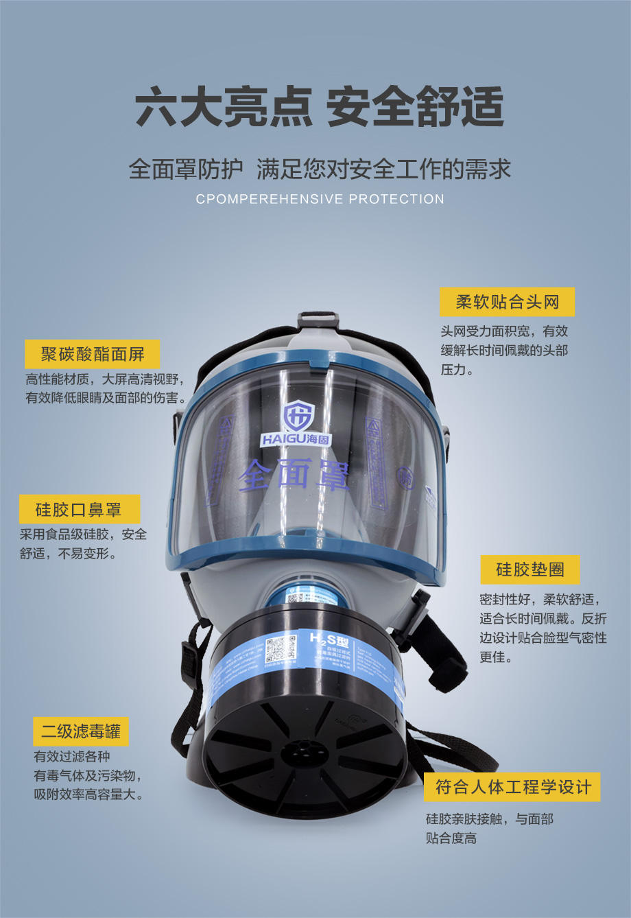 海固911全面罩+HG-ABS/P-H2S-2濾毒罐 硫化氫活性炭防毒面具