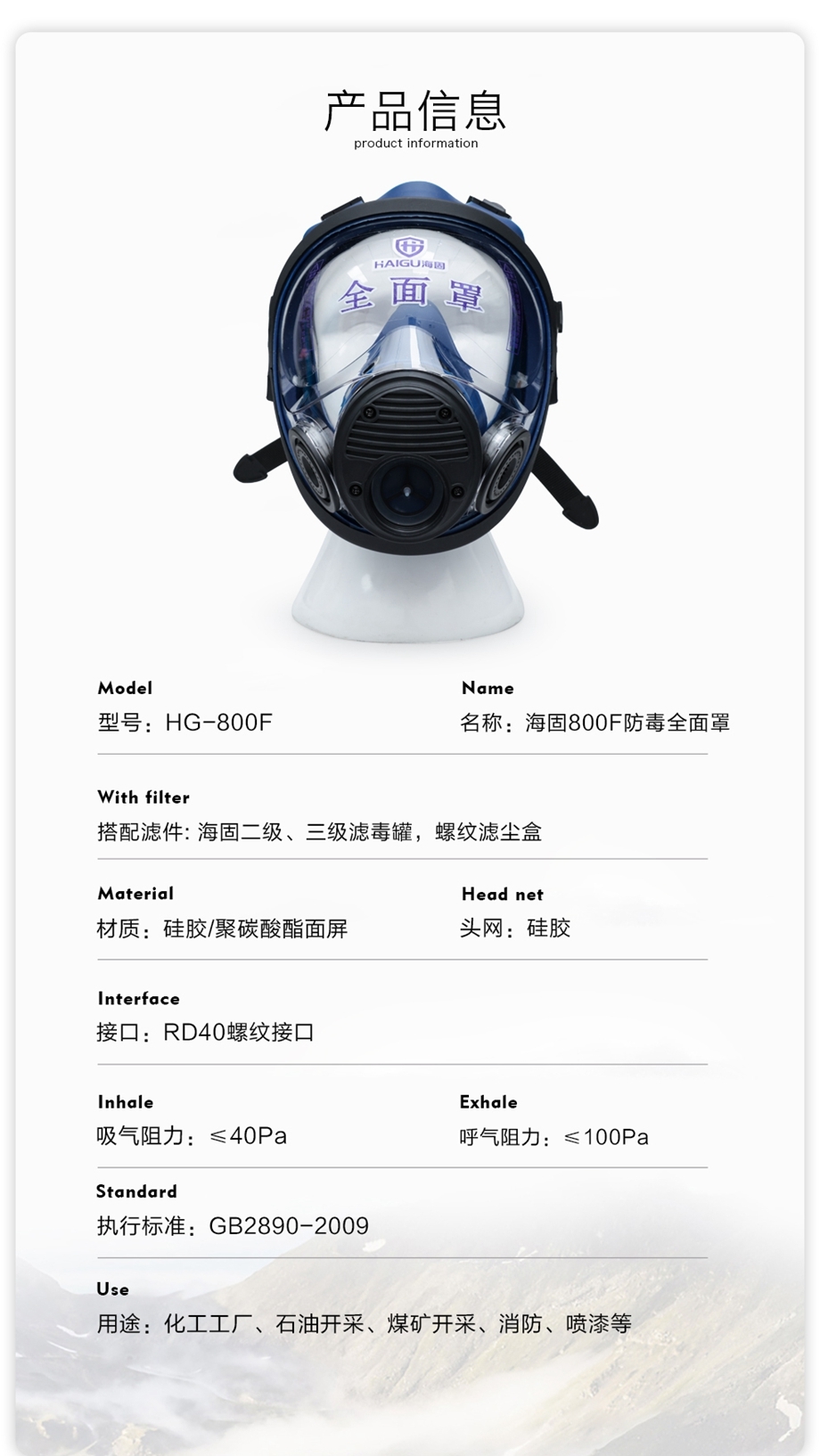 海固新品HG-800F防毒全面罩