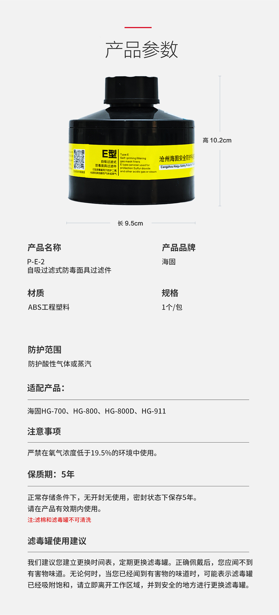 海固P-E-2濾毒罐 防護(hù)二氧化硫和其他酸性氣體或蒸氣