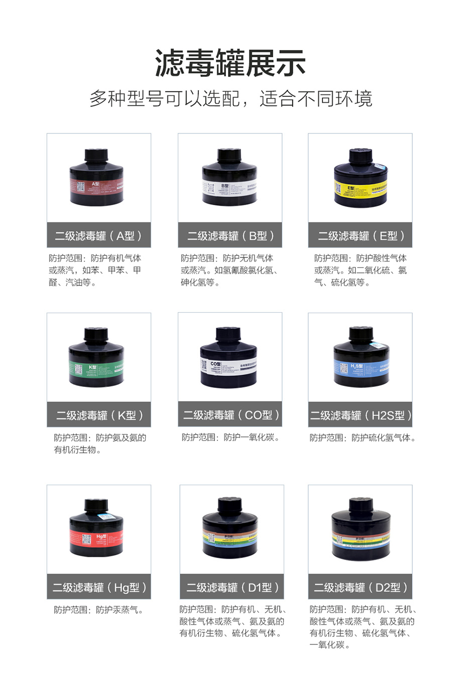 防護(hù)范圍:主要防護(hù)酸性氣體和蒸汽
