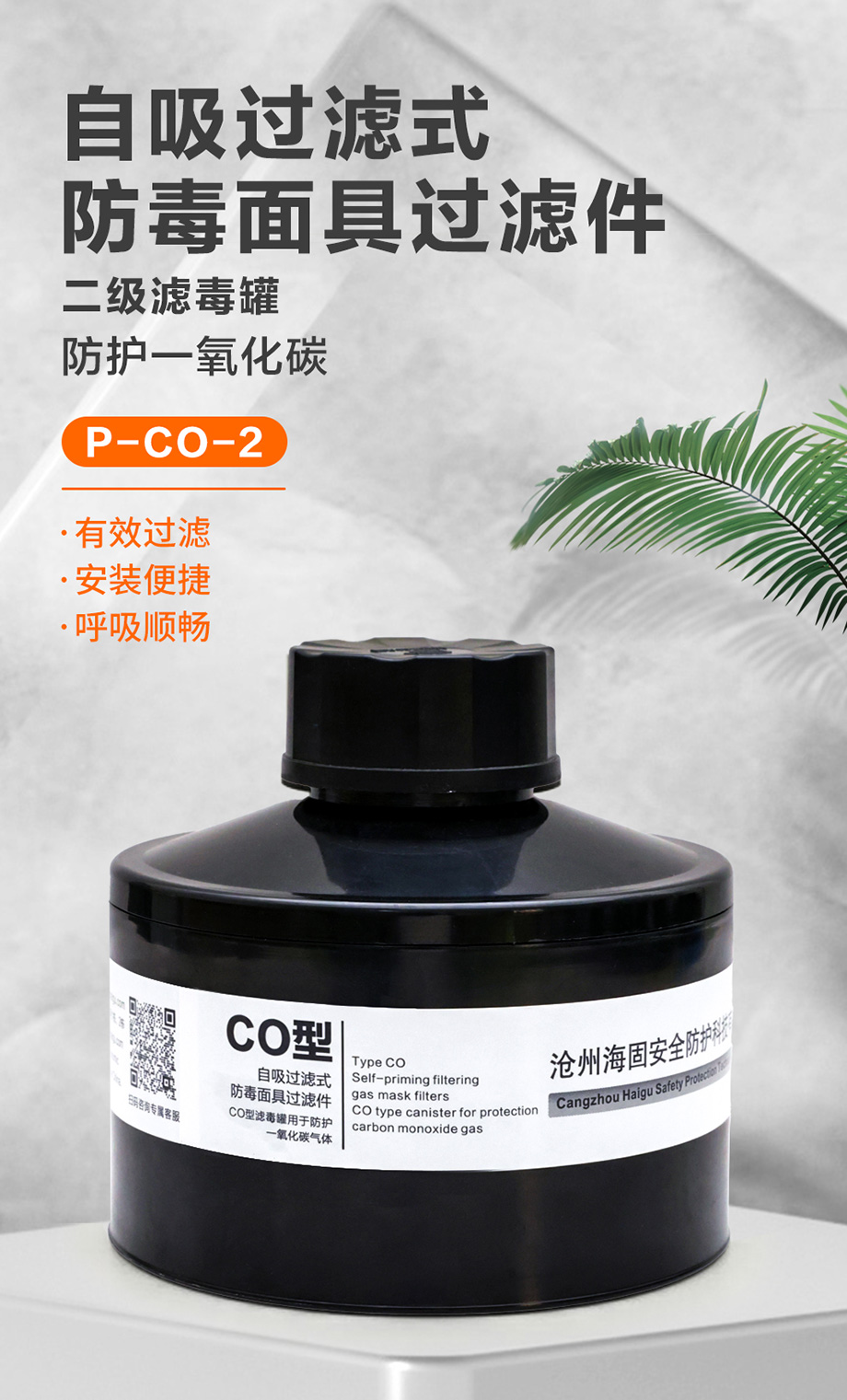 海固P-CO-2濾毒罐 一氧化碳?xì)怏w防護(hù) 5號(hào)濾毒罐