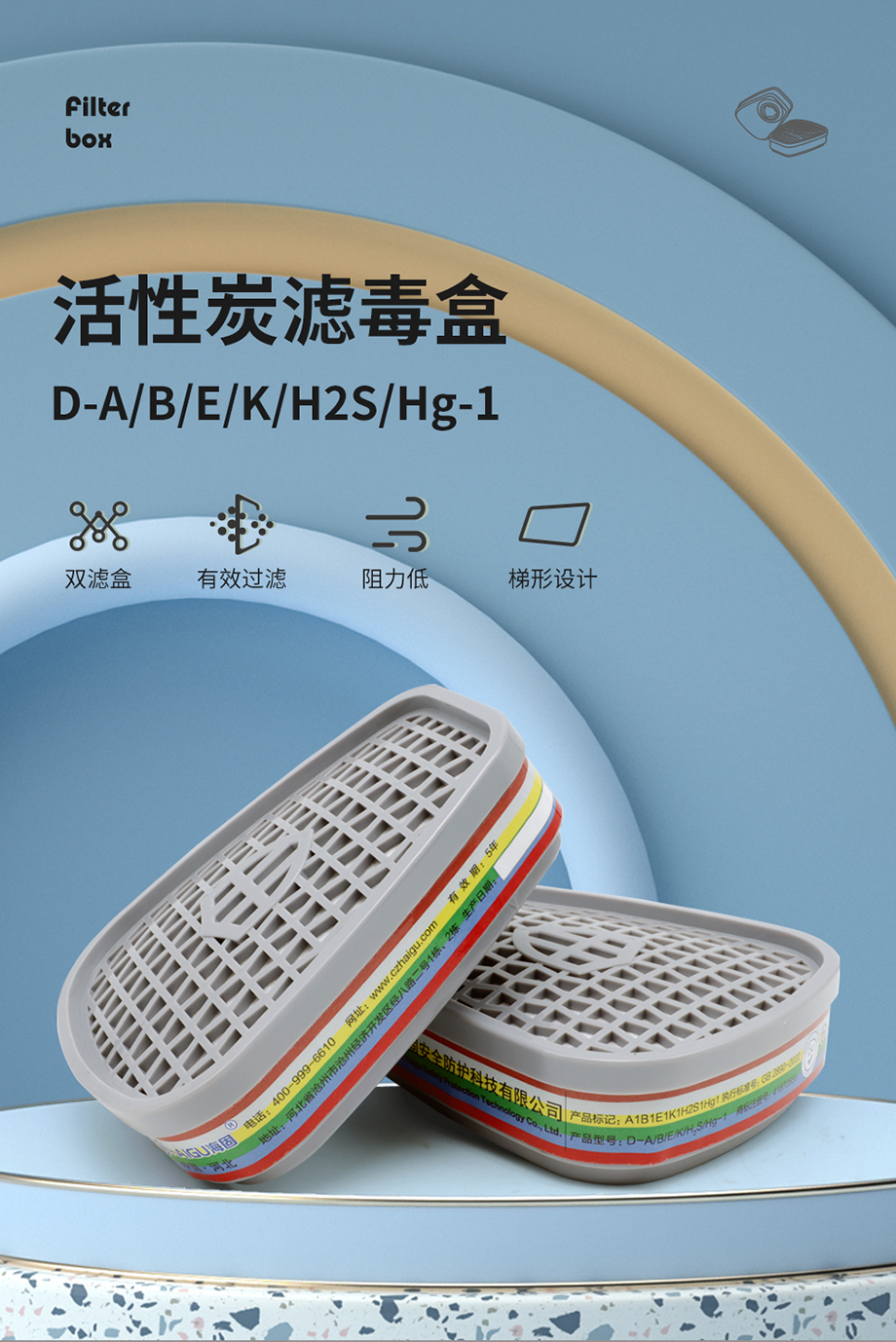 海固多功能D-A/B/E/K/H2S-Hg-1濾毒盒 有機無機氣體、酸性氣體、氨氣、硫化氫、汞等多種氣體防護