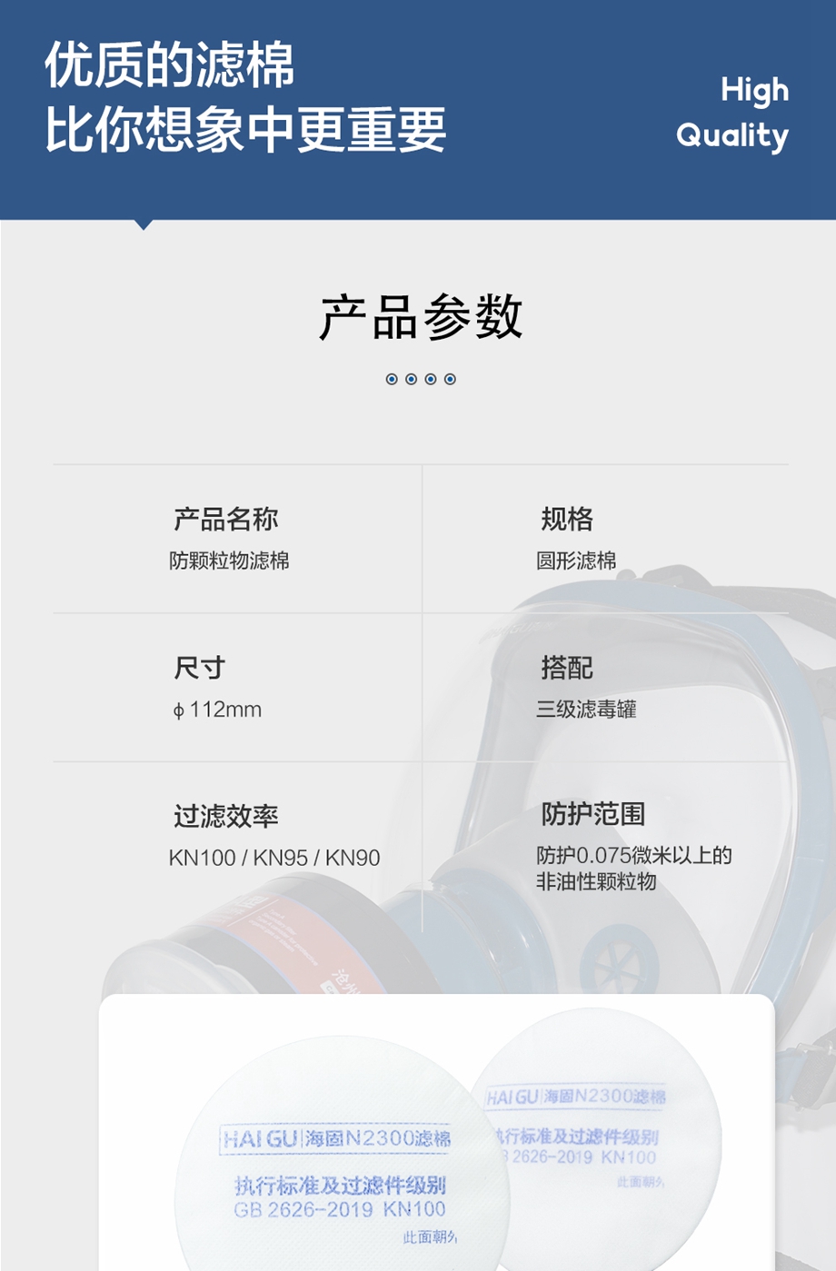 海固2系列3級KN圓形濾棉 KN100/KN95/KN90非油性顆粒物濾棉