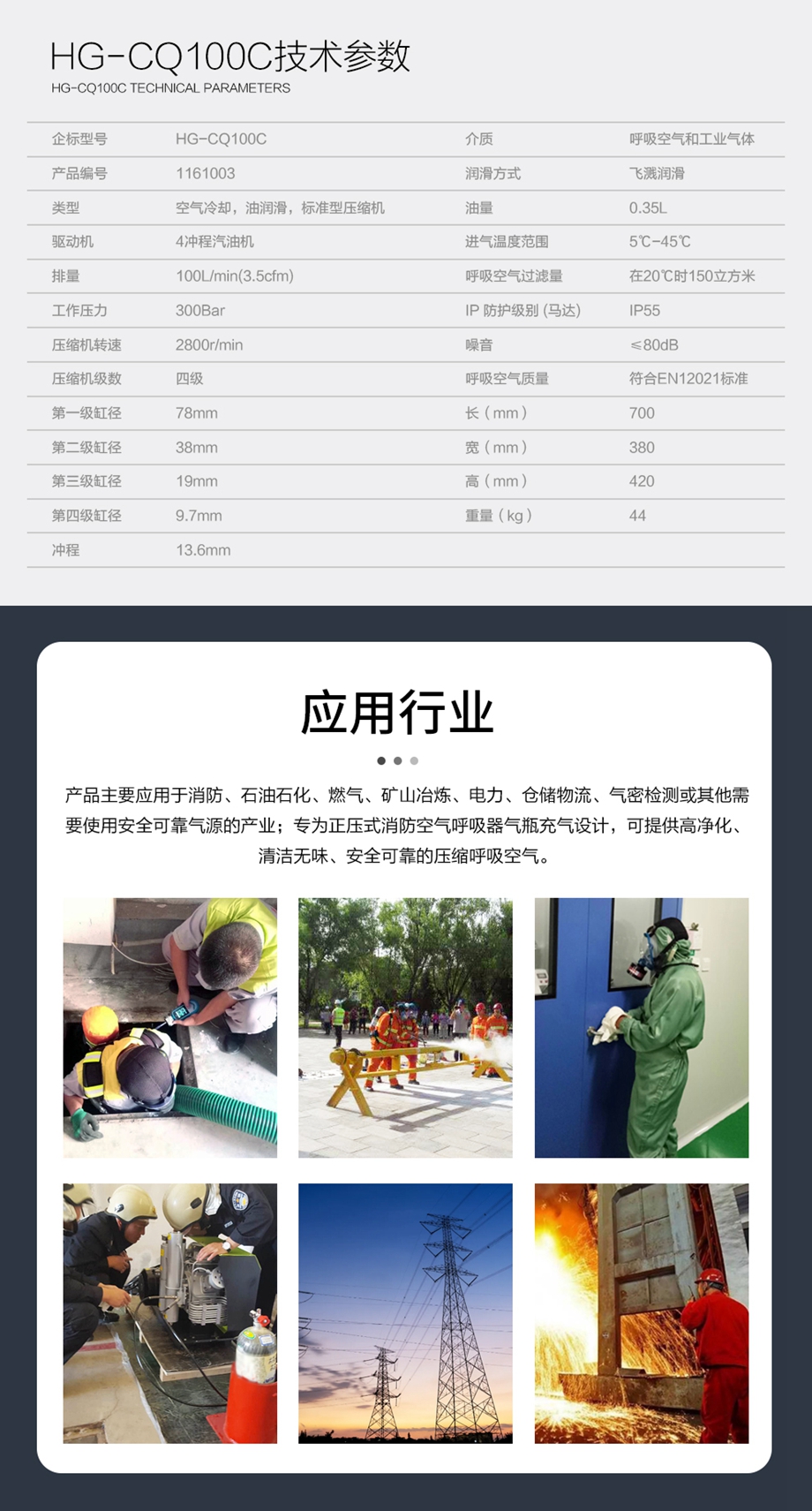 海固HG-CQ100C高壓呼吸空氣壓縮機(jī) 正壓式空氣呼吸器充氣泵