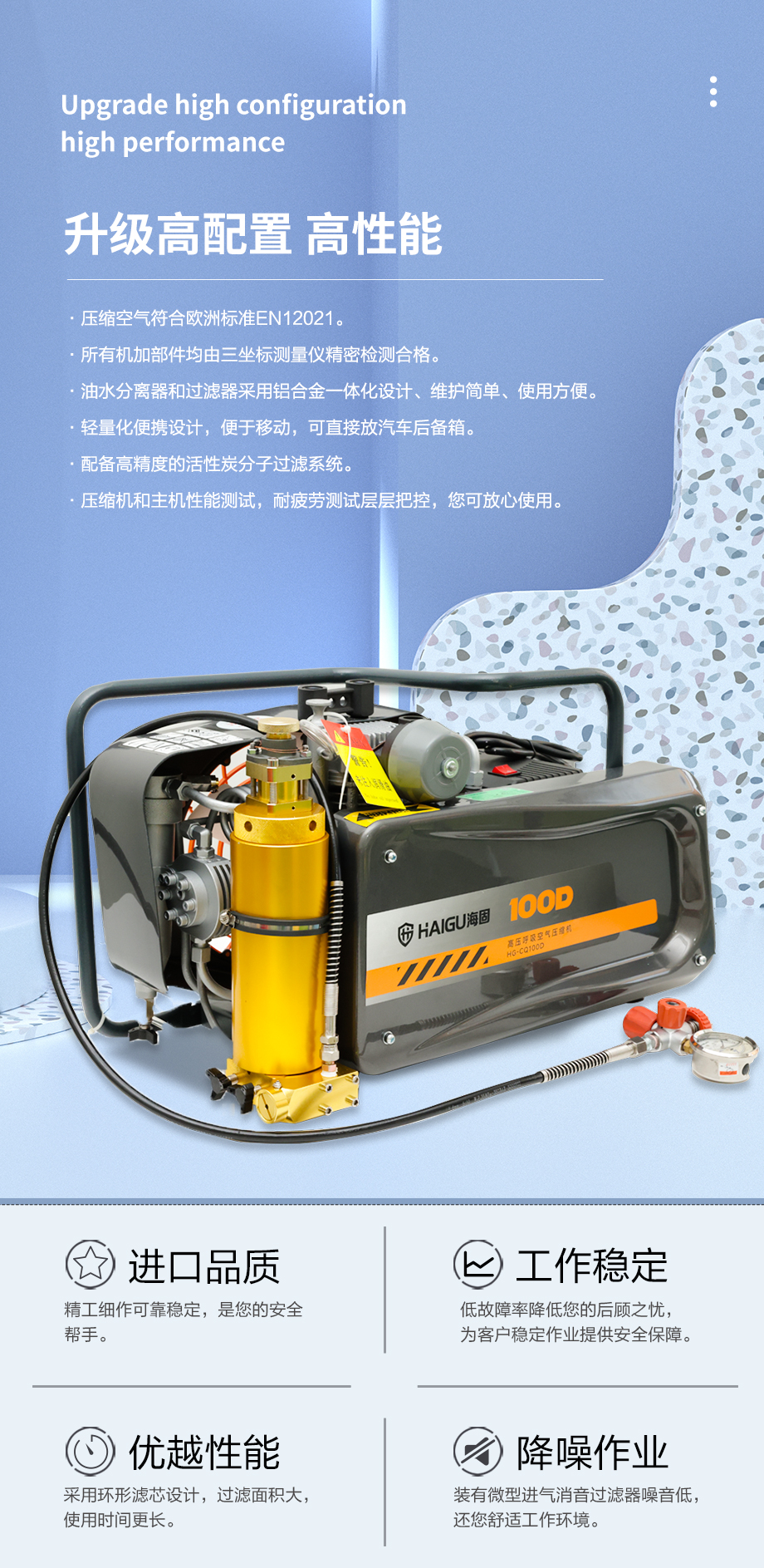海固HG-CQ100D高壓呼吸空氣壓縮機 正壓式空氣呼吸器充氣泵