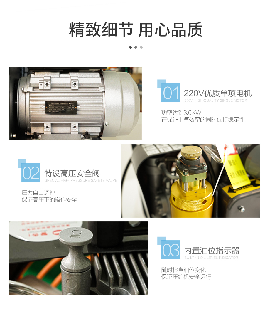 產(chǎn)品規(guī)格:220V 50HZ 2.2KW 單相電機100L/min三級缸