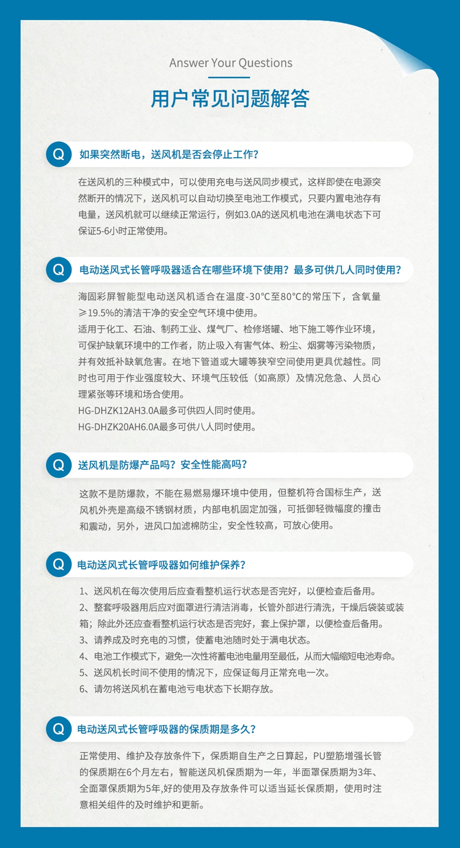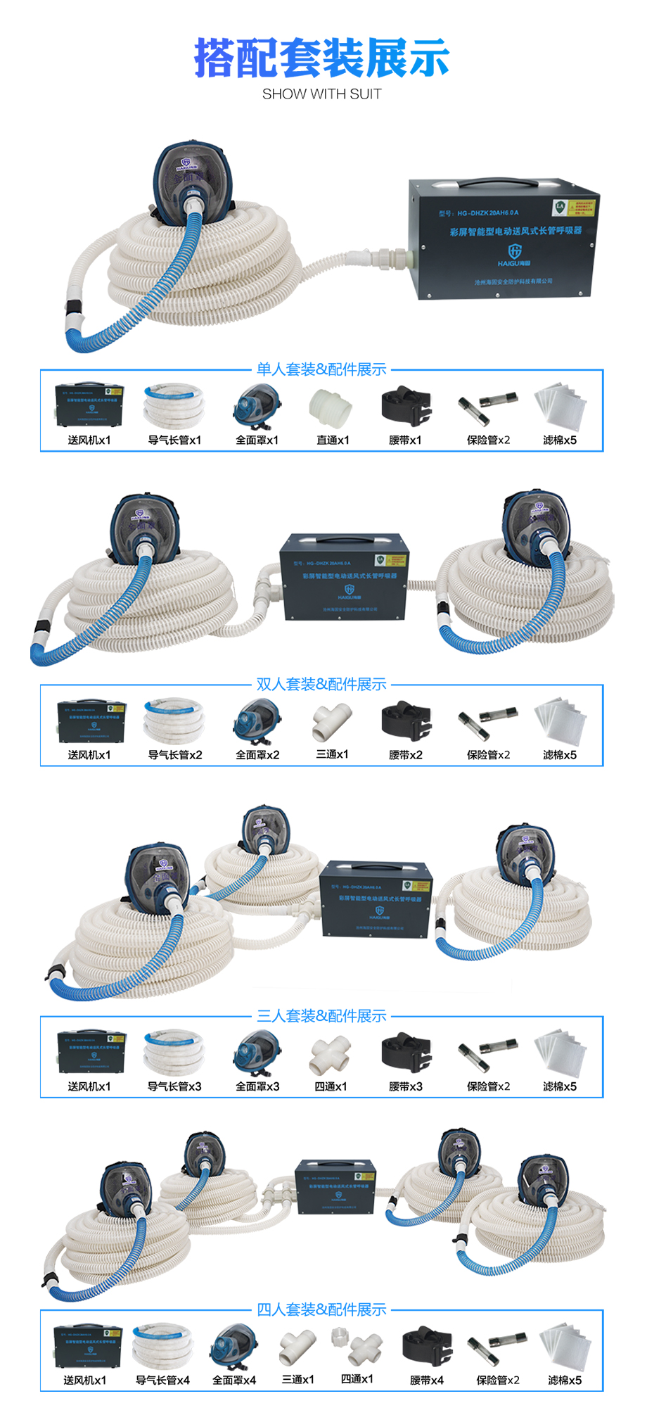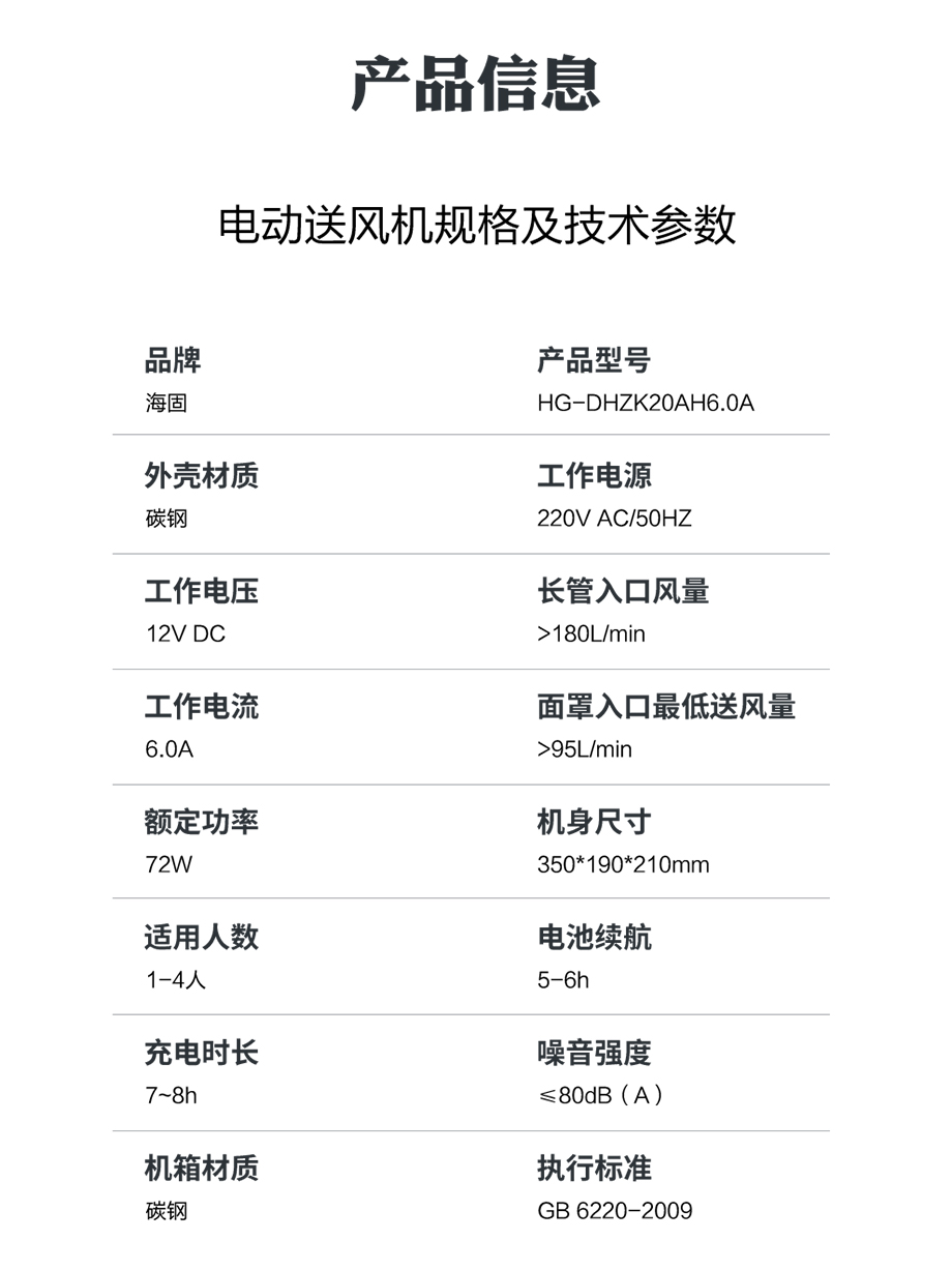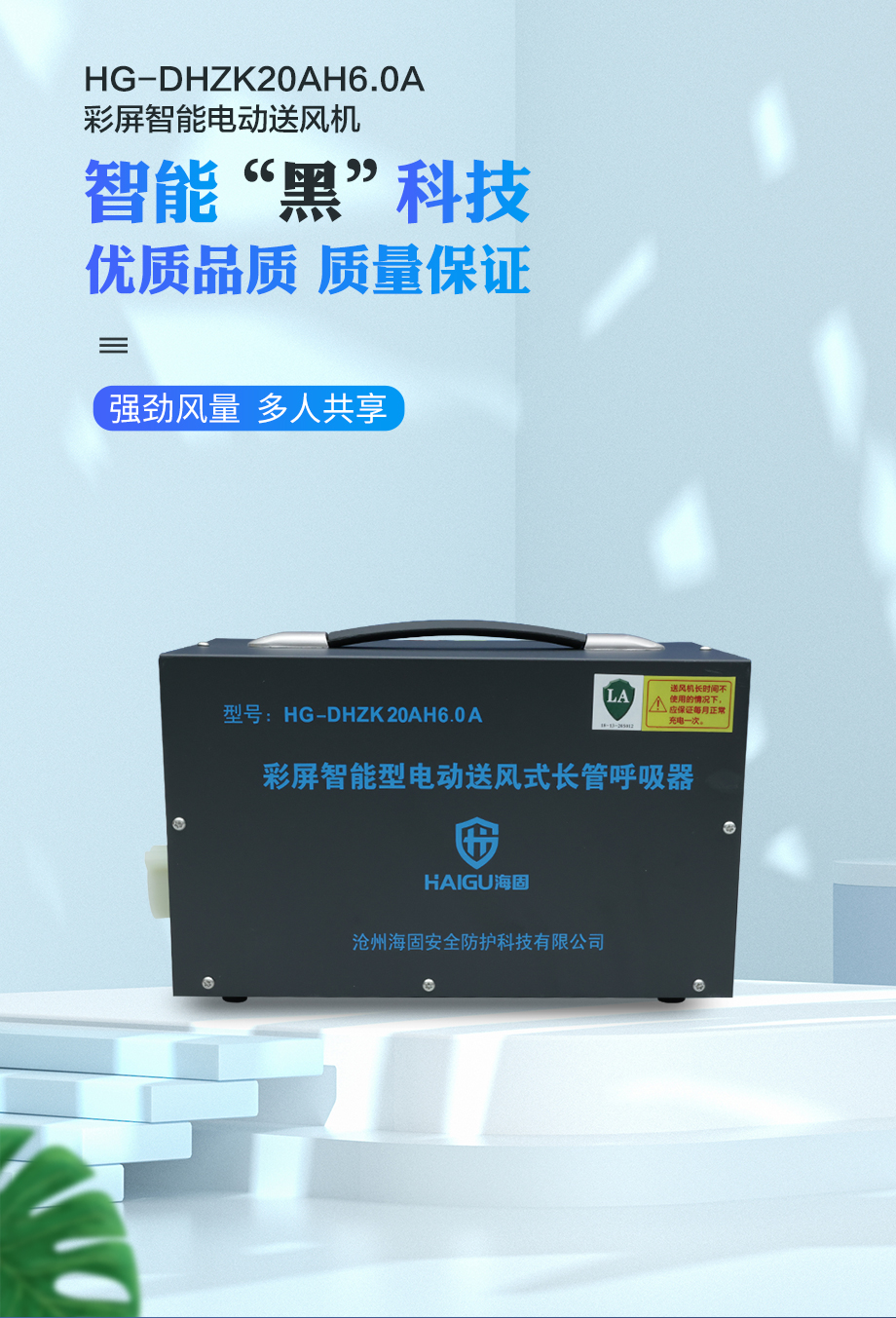 海固HG-DHZK20AH6.0A彩屏智能型 雙人 全面罩 電動(dòng)送風(fēng)式長(zhǎng)管呼吸器