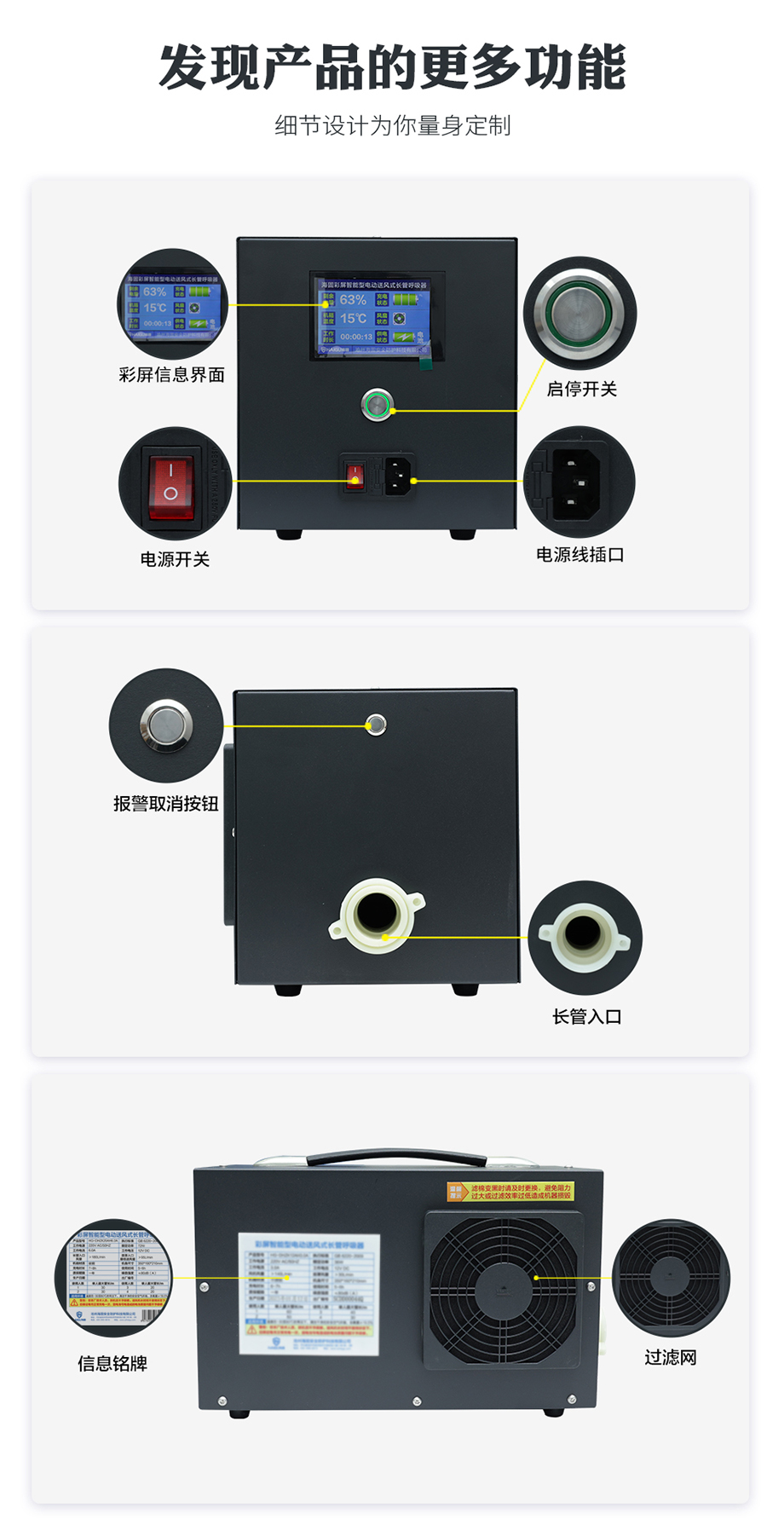 產(chǎn)品名稱:彩屏智能型電動(dòng)送風(fēng)式長(zhǎng)管呼吸器