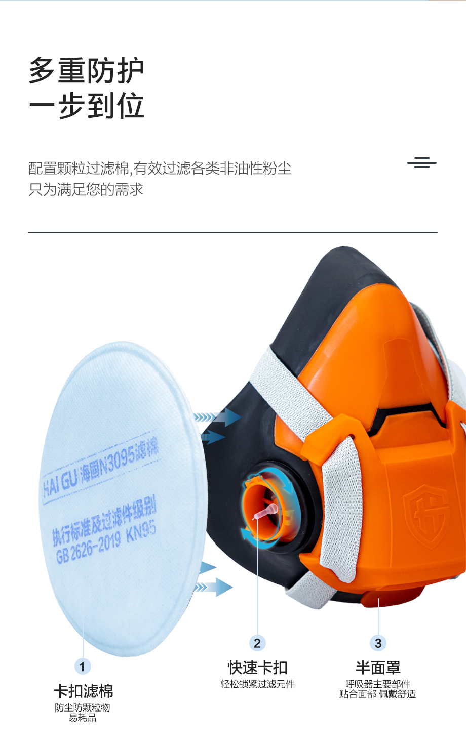 海固HG-602半面罩+KN卡扣濾棉 防護(hù)非油性顆粒物濾棉
