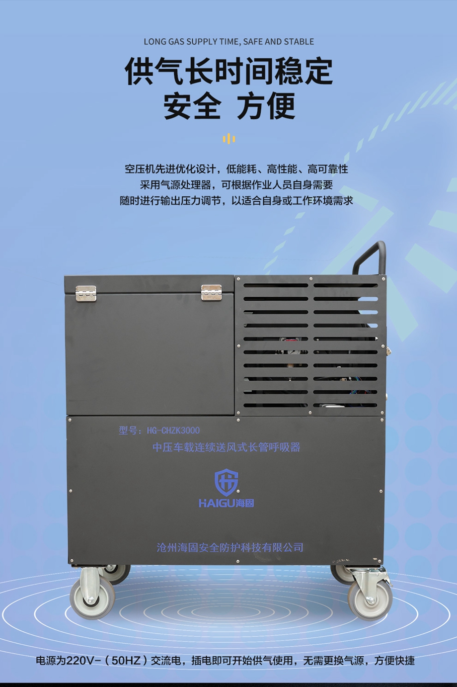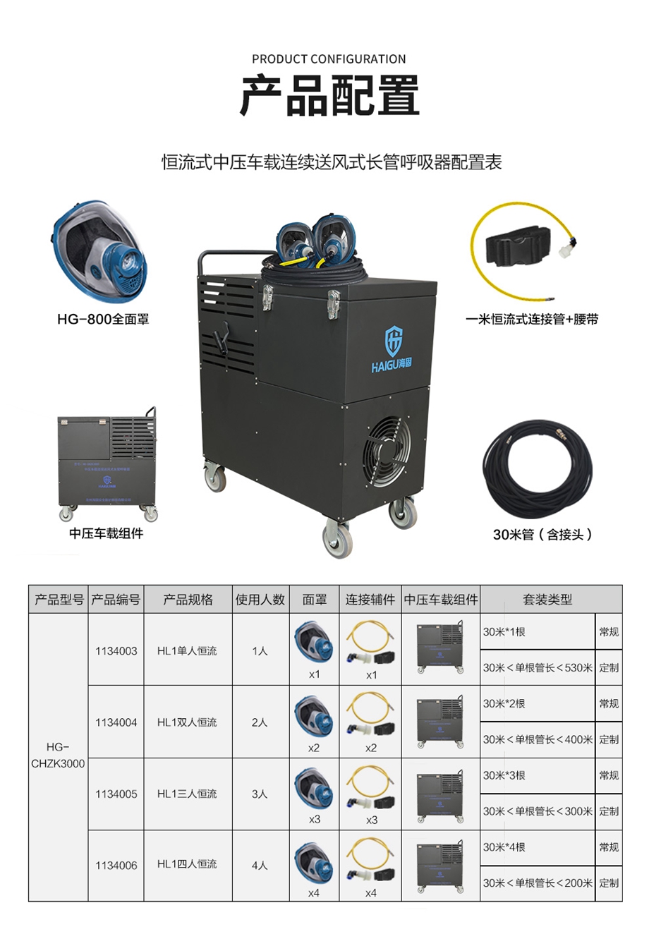 海固HG-CHZK3000 全面罩 中壓車(chē)載連續(xù)送風(fēng)式長(zhǎng)管呼吸器 升級(jí)開(kāi)關(guān)插座組件 供電穩(wěn)定