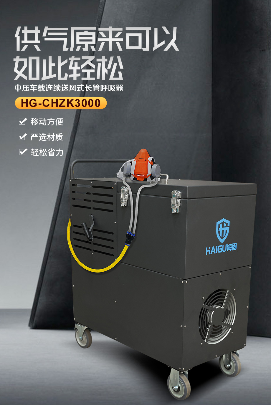海固HG-CHZK3000 半面罩 恒流式中壓車載連續(xù)送風式長管呼吸