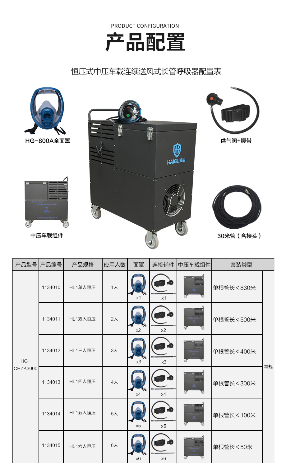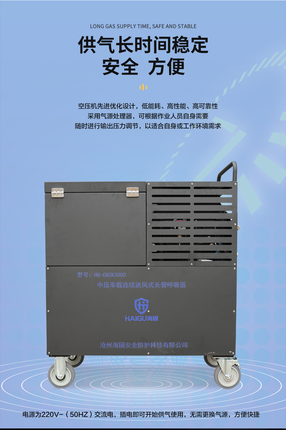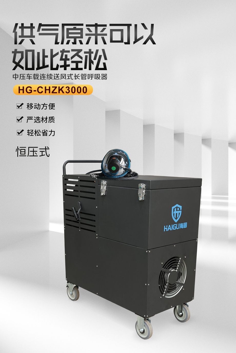海固HG-CHZK3000恒壓式中壓車載連續(xù)送風式長管呼吸器