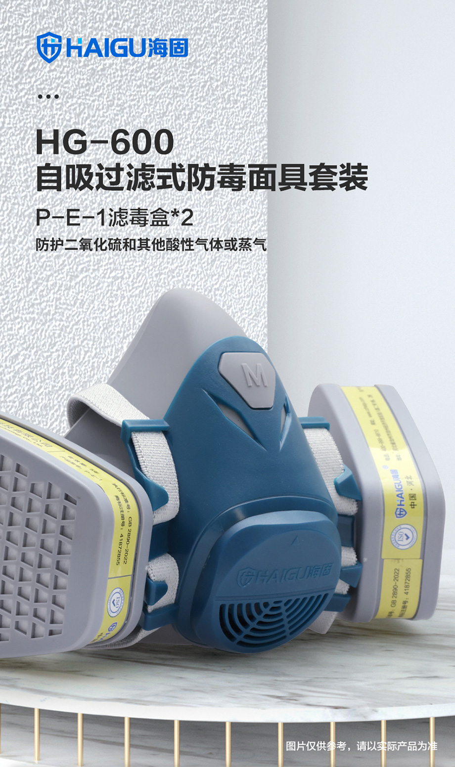 海固600半面罩+P-E-1濾毒盒 防護二氧化硫和其他酸性氣體或蒸汽套裝