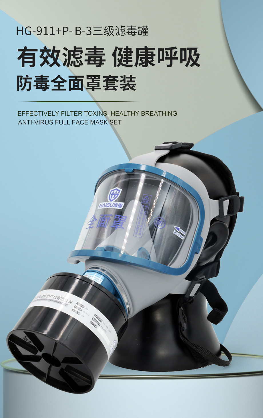海固911全面罩+P-B-3濾毒罐 無機(jī)氣體綜合防護(hù)