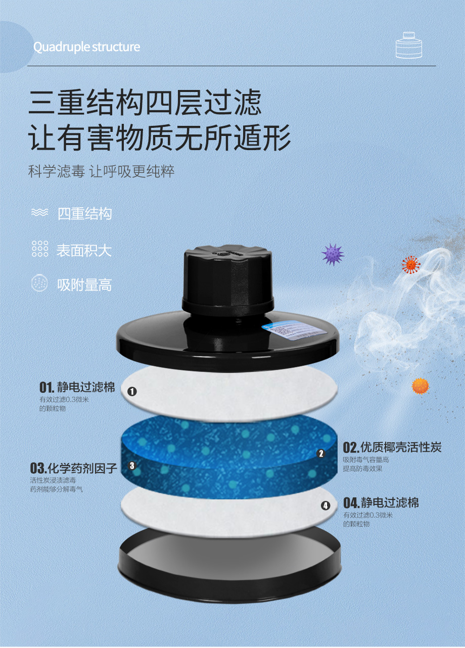 產(chǎn)品規(guī)格:寶藍(lán)灰硅膠/ABS濾毒罐
