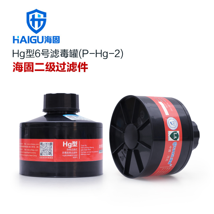 海固P-Hg-2濾毒罐 汞蒸汽、水銀防護(hù) 6號濾毒