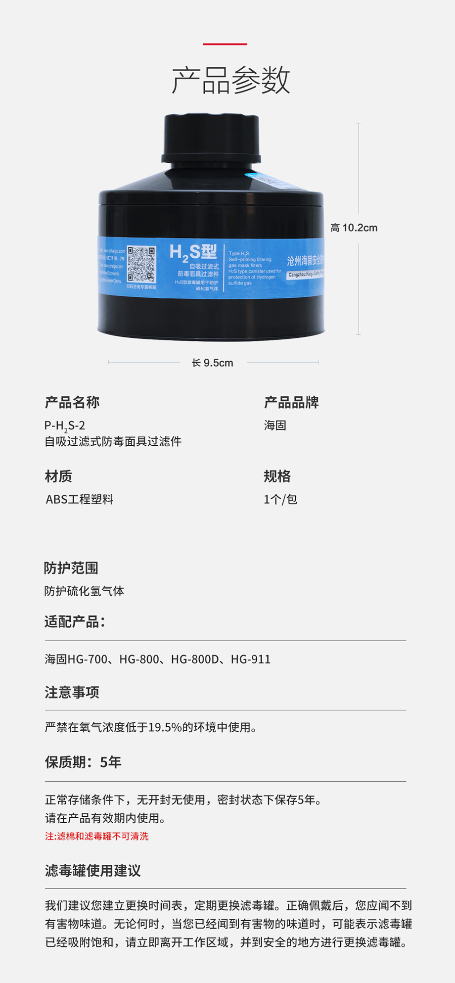 海固P-H2S-2濾毒罐 硫化氫氣體防護