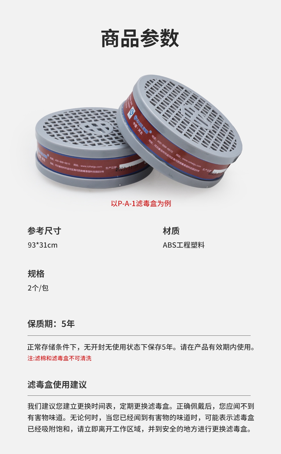 - 一級過濾件濾毒盒