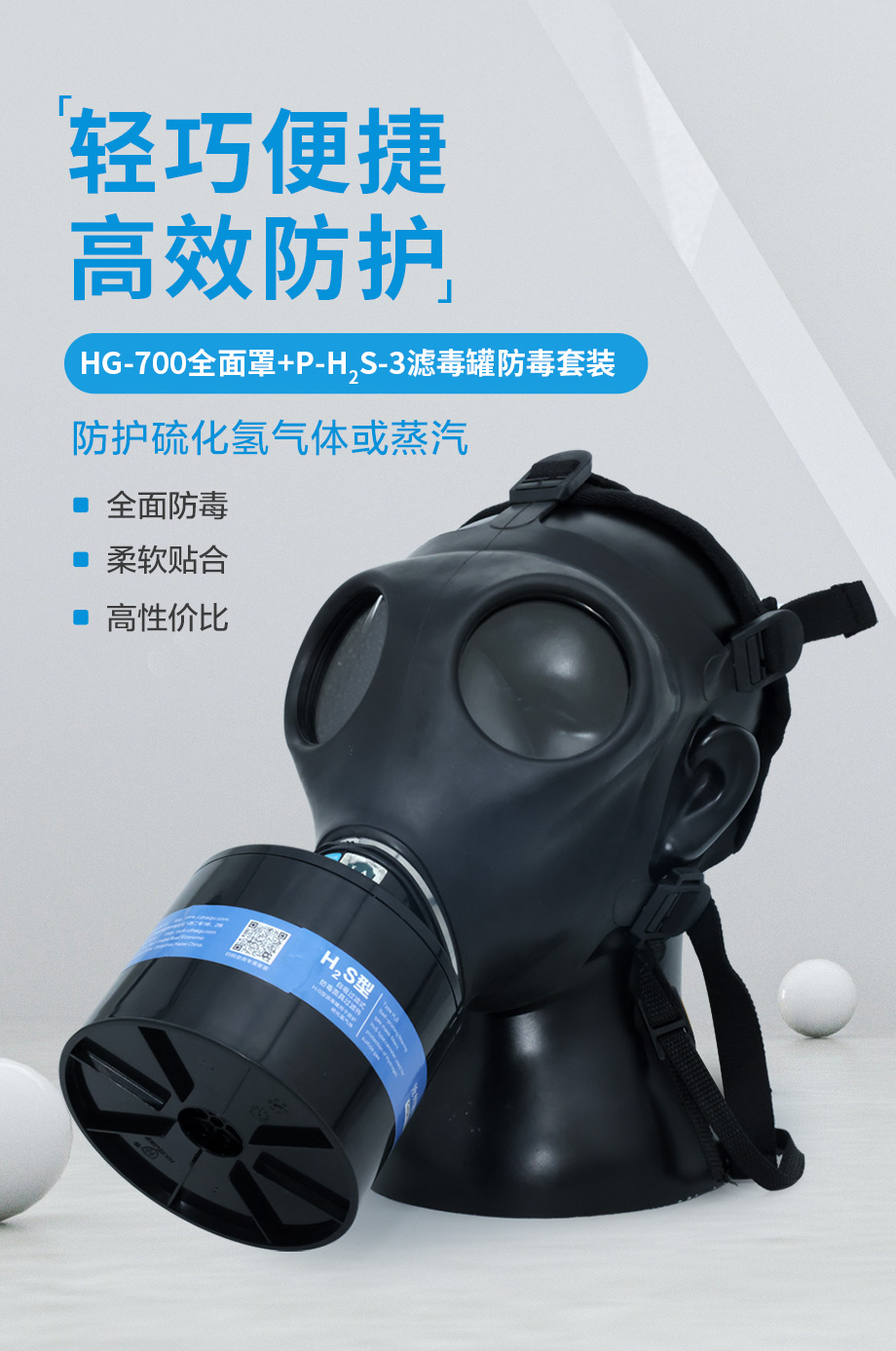 海固700全面罩+P-H2S-3濾毒罐 硫化氫氣體防護(hù)