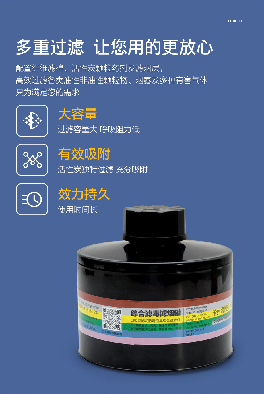 三級(jí)過濾件濾毒罐