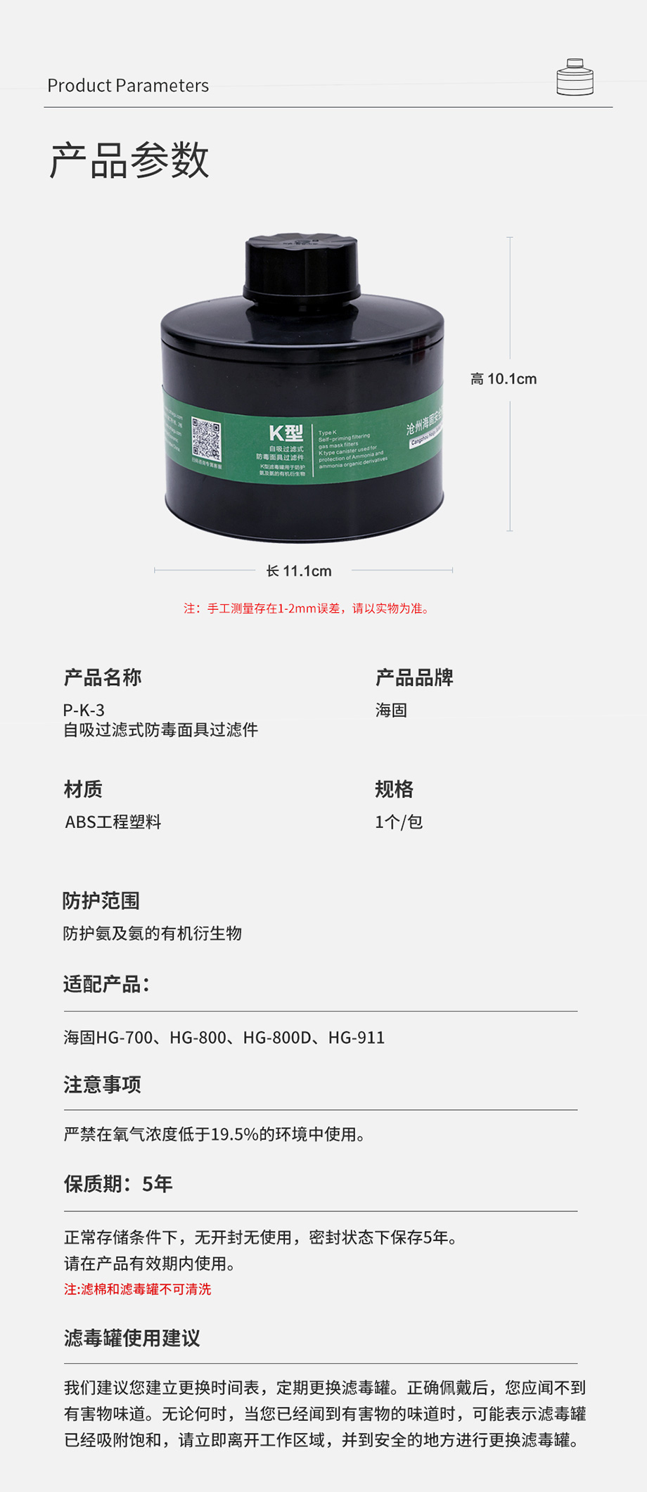 - 一級(jí)過濾件濾毒盒