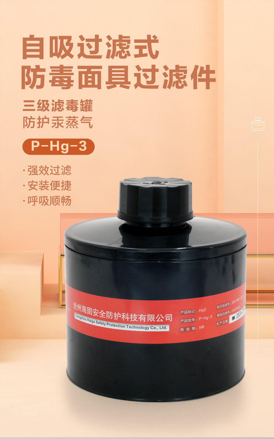 海固P-Hg-3濾毒罐 汞蒸汽、水銀防護(hù)專用三級(jí)濾毒罐