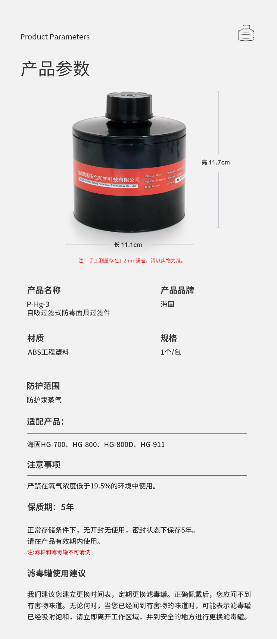 產(chǎn)品規(guī)格:ABS濾毒罐