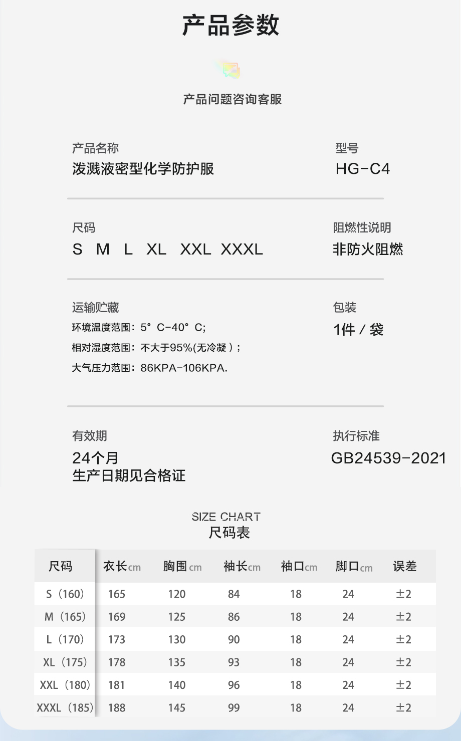 海固HG-C4潑濺液密型化學防護服 輕型化學防護服