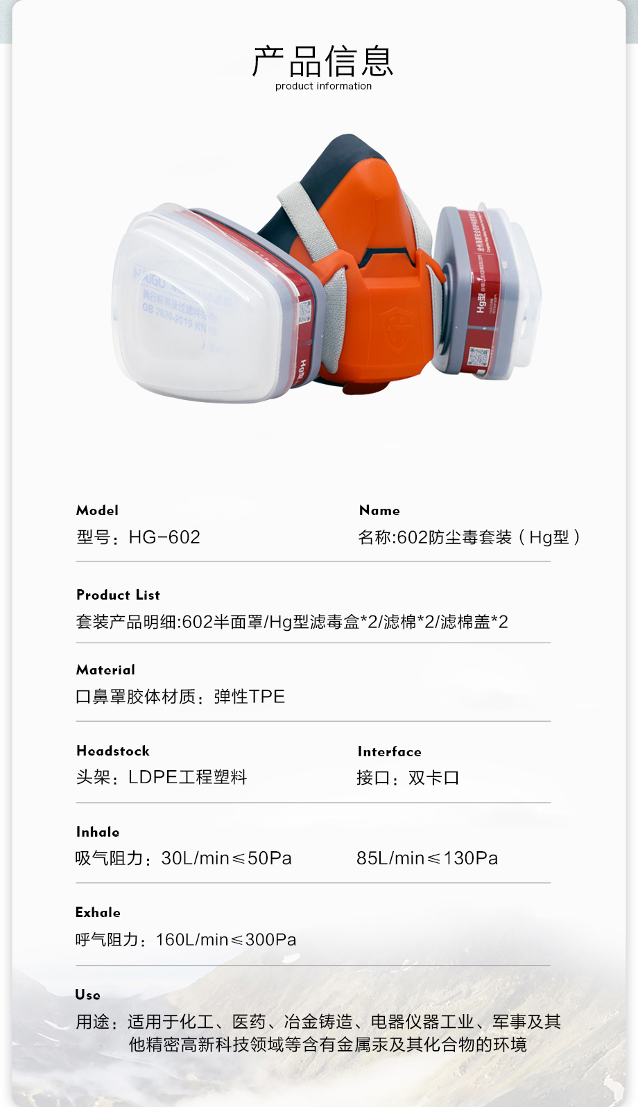 產(chǎn)品名稱:半面罩防塵毒套裝