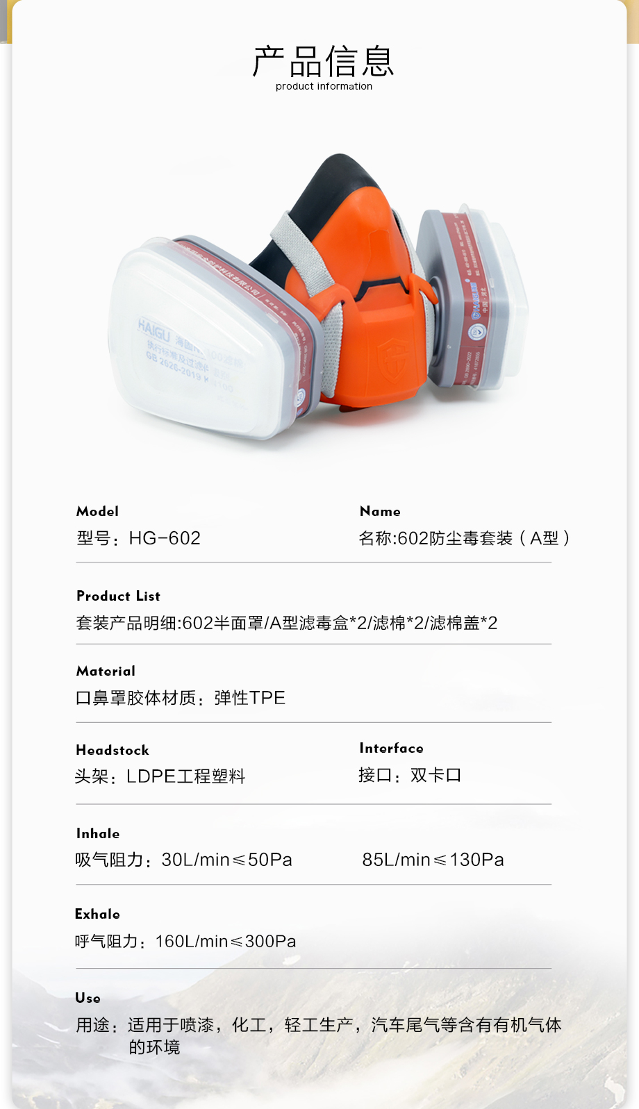 海固HG-602半面罩+P-K-1濾毒盒+濾棉+T型濾棉蓋 防塵毒套裝