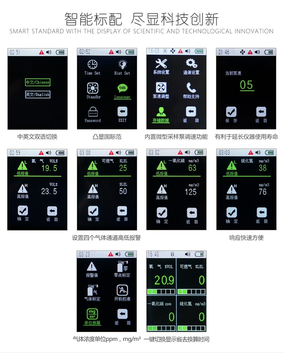 - 單一泵吸彩屏氣體檢測儀