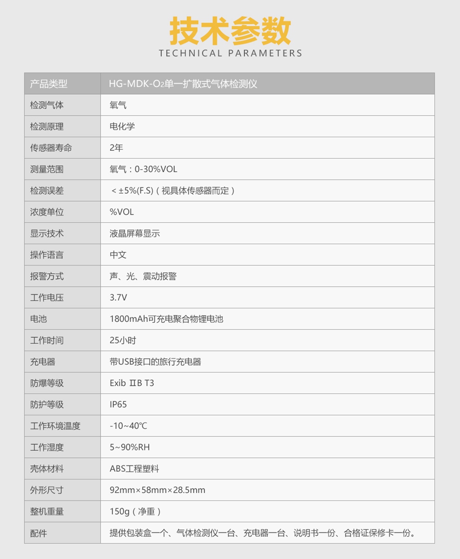 HG-MDK-O2氧氣迷你單一擴散式氣體檢測儀