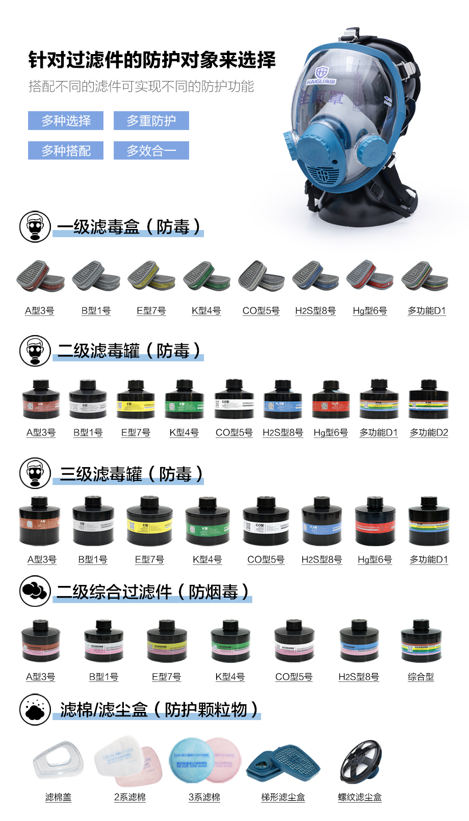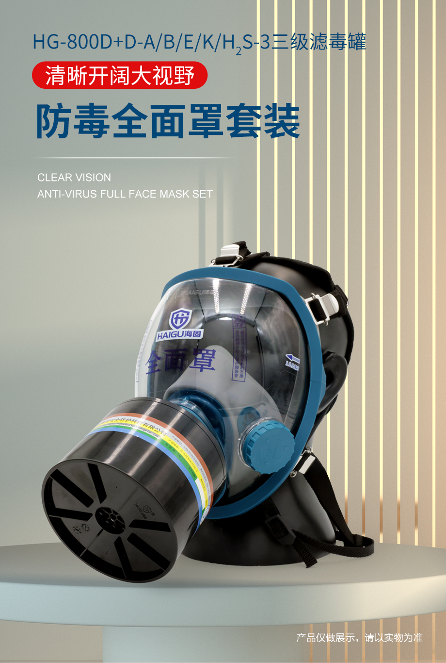 海固800D全面罩+D-A/B/E/K/H2S-3濾毒罐 綜合防毒氣套裝