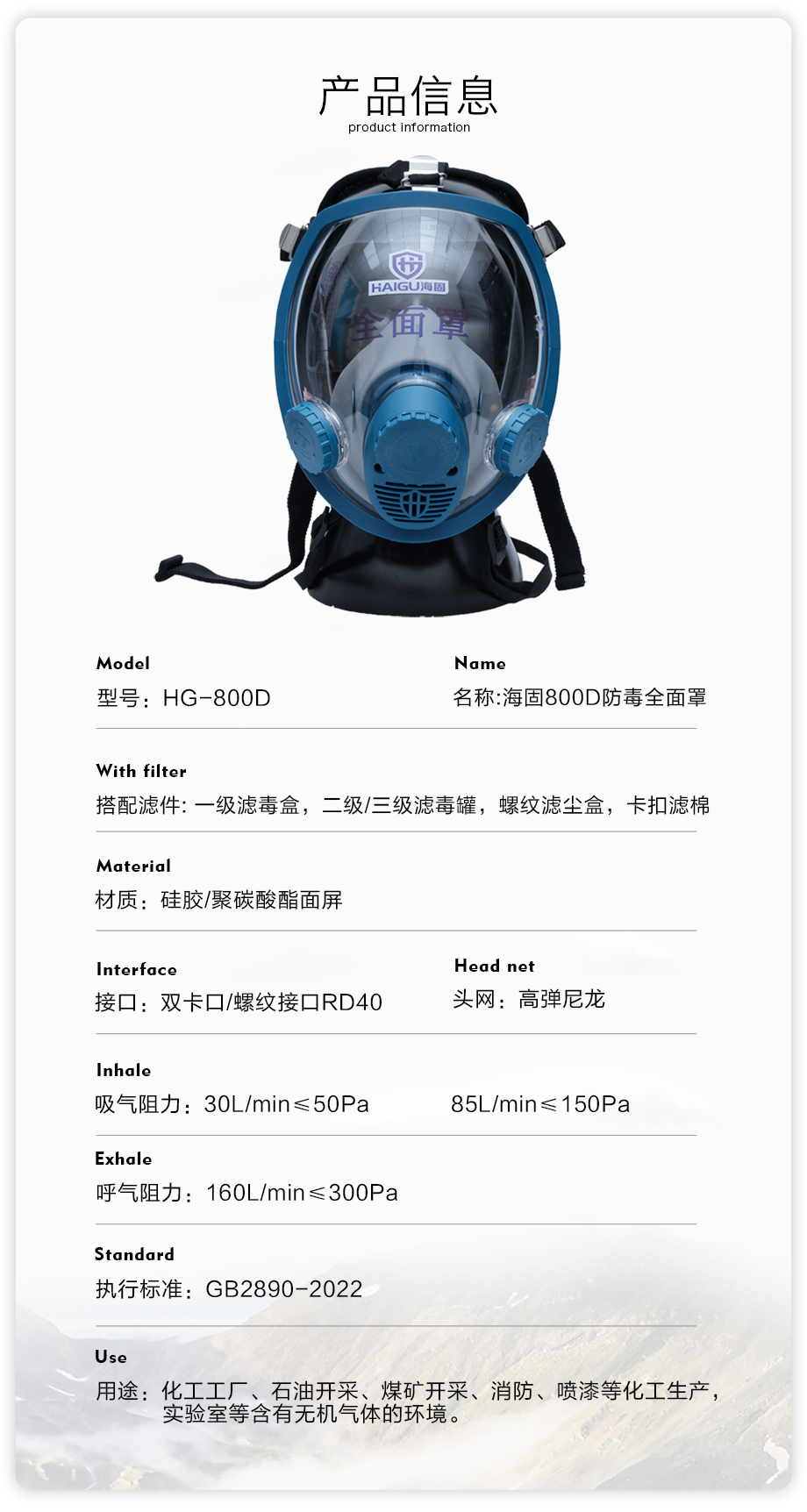 海固800D全面罩+P-B-3濾毒罐 無(wú)機(jī)氣體防護(hù)套裝