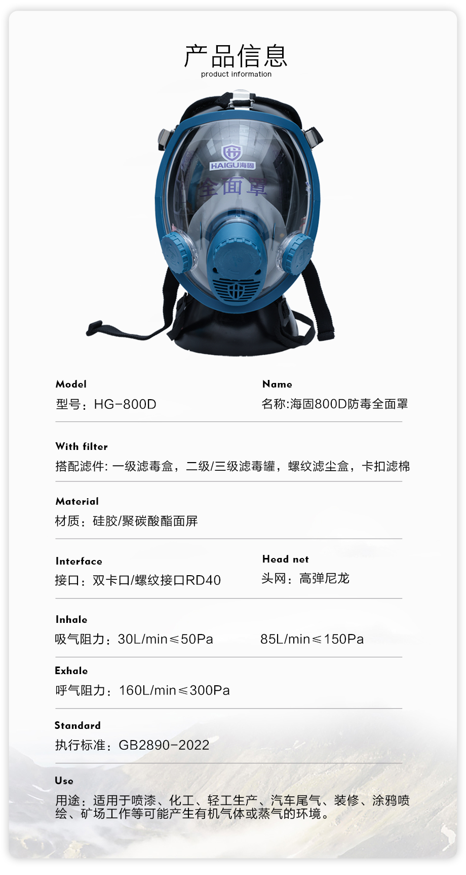 海固800D全面罩+P-A-3濾毒罐 有機(jī)氣體防護(hù)套裝