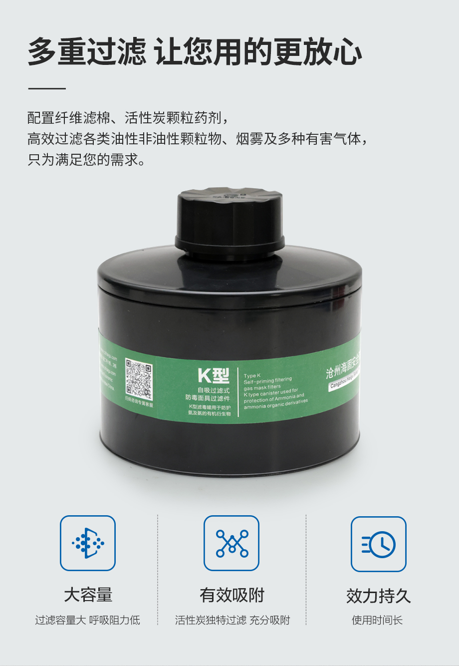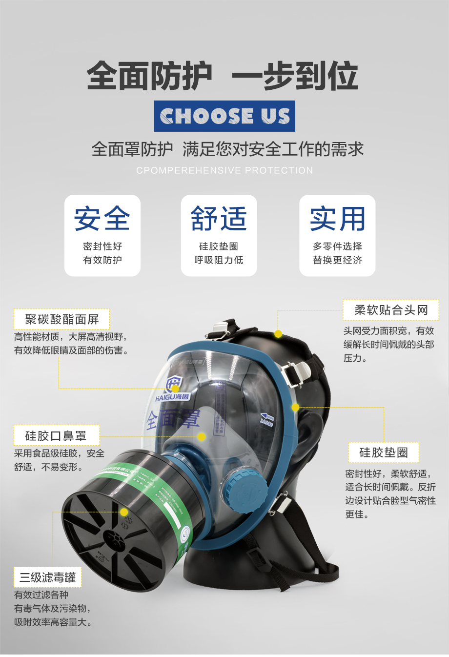 海固800D全面罩+P-K-3濾毒罐 氨氣防護套裝
