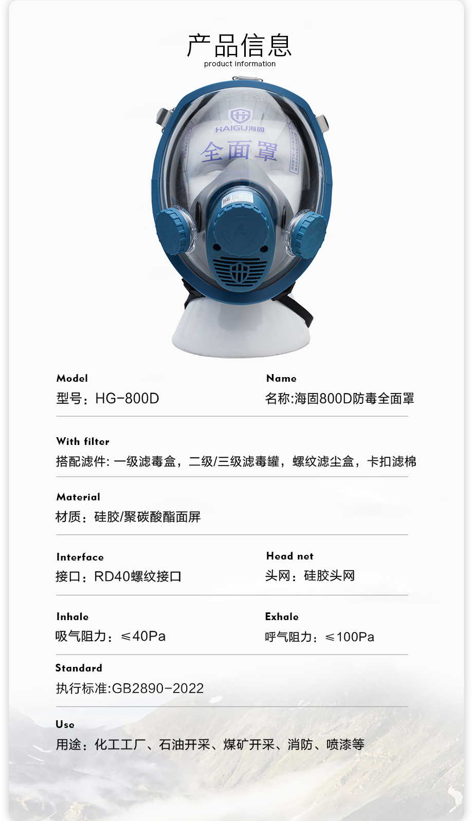 - 800D全面罩防毒面具套裝