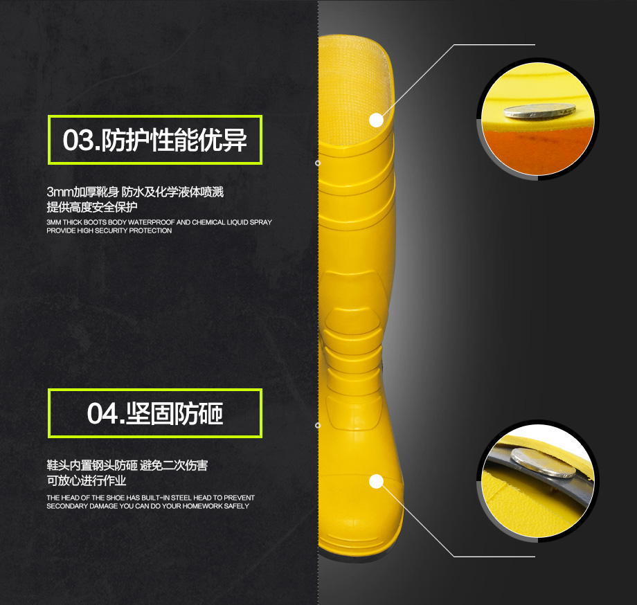 產(chǎn)品名稱(chēng):二級(jí)靴子-鋼頭鋼底防穿刺防化靴
