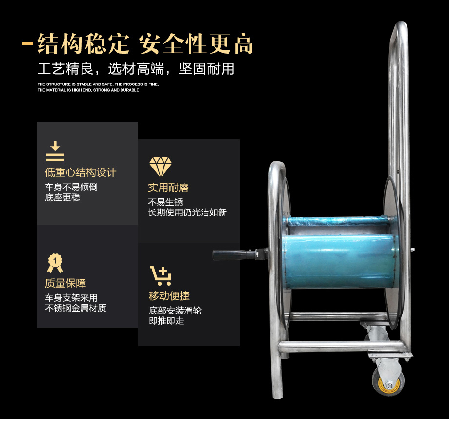 海固不銹鋼卷管車軟管收納架 中壓車載長管呼吸器搭配使用