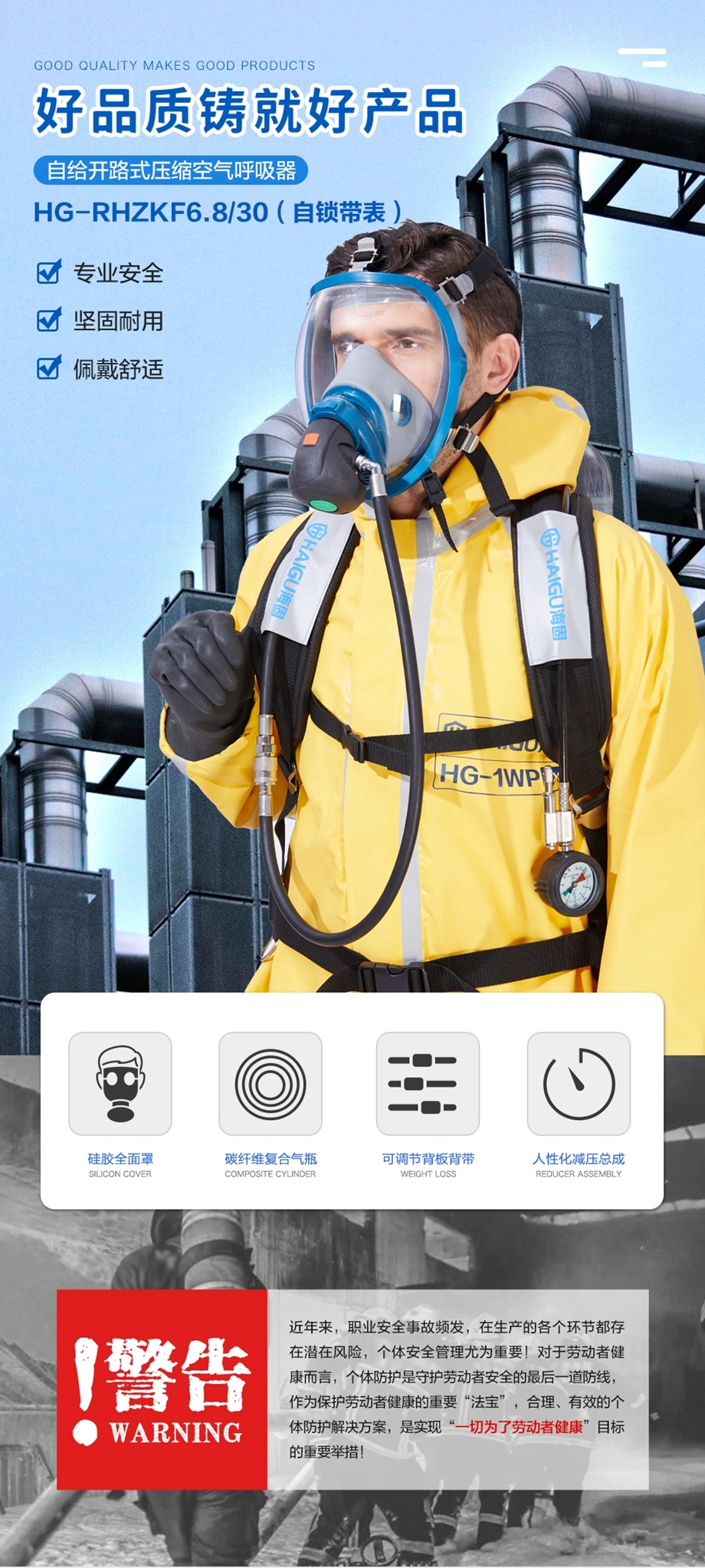 海固RHZKF6.8/30 自鎖帶表正壓式空氣呼吸器 氣瓶帶自鎖瓶閥